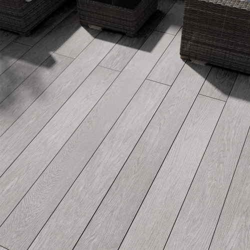 NewDeck vlonderplanken zijn opgebouwd uit een sterke kern van watervast hardhout multiplex (getest conform BS1088), volledig omhuld door een duurzame PU beschermlaag. Deze combinatie zorgt voor een stabiele, vormvaste plank met een natuurlijke uitstraling en lange levensduur. De PU laag is ontwikkeld voor hoge krasbestendigheid, kleurbehoud en optimale bescherming. Elke serie bevat 25 unieke houtnerfstructuren, waardoor herhaling in het oppervlak wordt voorkomen.